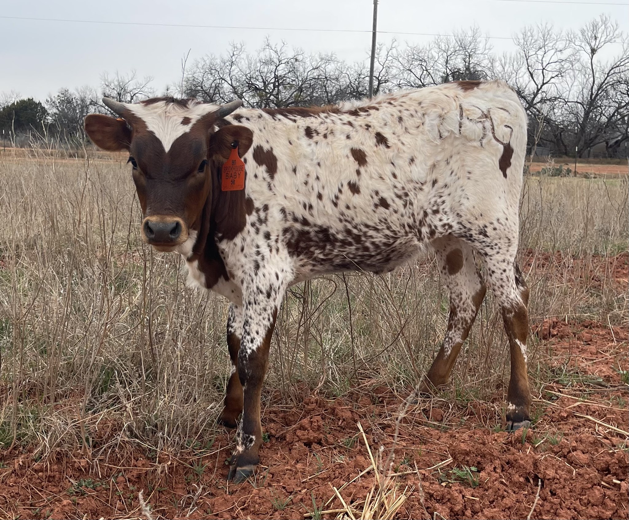 Red Head, roan spots on body, red stockings